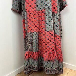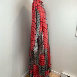Raga Women's 2X Plus Red Orange Navy Blue Boho Maxi Dress Gown Long Sleeve Boho