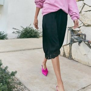 Beautiful lace trim drawstring slip skirt from Ragdoll LA. Side pockets.