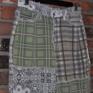 Raggedy Ann Inspired Frayed Patchwork Plaid & Bandana High Rise Pants M