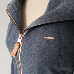 Stylish jacket made for spring and summer. Water resistant, gorgeous blue exterior with copper details.