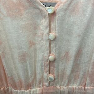 Rails Peach Pink Tie Dye Dress. Adjustable spaghetti straps, partial button closure on the front, midi length, full lined interior. 55% linen, 45% rayon fabric. Size small. Good pre owned condition. Please see photos, reasonable offers welcome!
