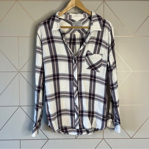 Rails Hunter Plaid Flannel Shirt White/Scarlet in great pre worn condition. A timeless must-have for any wardrobe. Made from ultra soft rayon fabric with a loose twill weave, this year-round comfort essential features a single chest pocket. Elevate your style with this classic long sleeve plaid button-down shirt. Please see all photos.