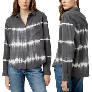 Rails Ingrid, Coal White Waves, raw hem shirt, tie-dye button down, fall layering, normcore, weekend casual, RAILZ