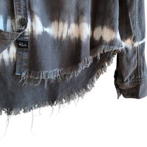 Rails Ingrid Raw Hem Casual Button Down Shirt XS Coal White Waves Grey White