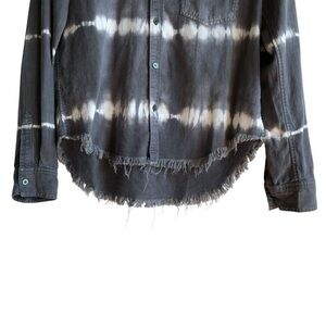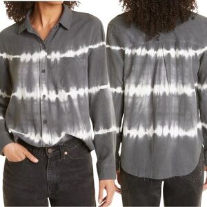 Rails Ingrid, Coal White Waves, raw hem shirt, tie-dye button down, fall layering, normcore, weekend casual, RAILZ