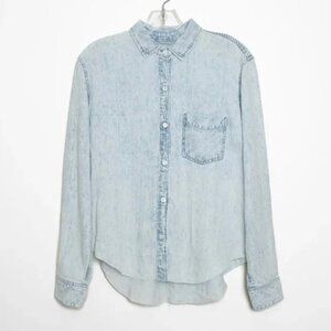 ✨ Rails Ingrid Raw Hem Shirt Button Down Lyocell Linen Blue Light Acid Wash