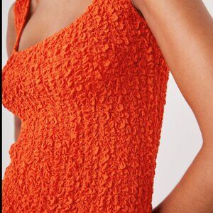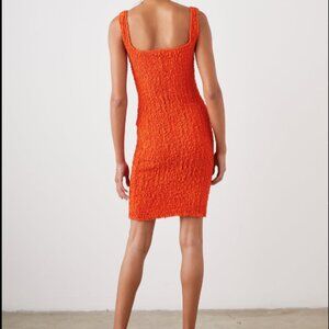 The Julie Dress is a curve-accentuating mini dress, one that hugs and clings in all the right places. Hints of 90s nostalgia are found in the details: popcorn fabric in red, a square neckline, and bodycon silhouette. While it's a perfect pick for a night out, it's also surprisingly casual, worn with sneakers or flats.
