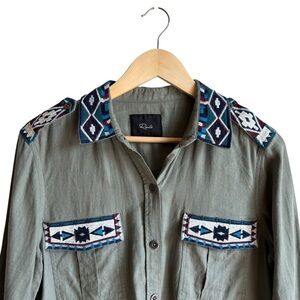 Rails Kona Sage Shirt Inca Embroidery Linen Blend Size Small