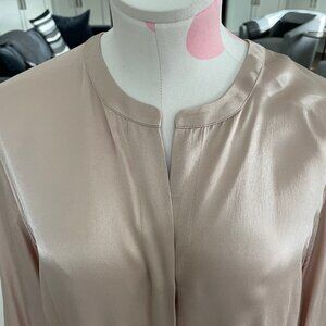 Rails Long Sleeve Rayon Viscose Concealed 2 Button Front Placket Crepe Chiffon Blouse in Pearl Champagne NWT