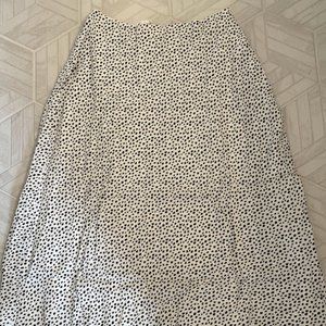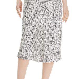 NWT lightweight 100% rayon spotted slip skirt. Midi length, lined, A-line silhouette. White with black dot print throughout. Side zip closure.
