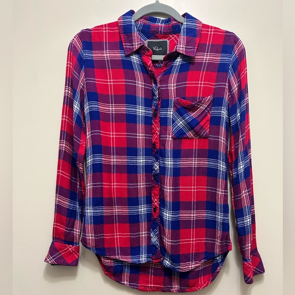 Beautiful bright red, blue and white Rails plaid top Excellent condition Armpit to armpit is 17” Shoulder to bottom hem is 24”