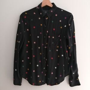 Rails Rocsi Rayon Button Up in Black Onyx With Rainbow Stars Size XS