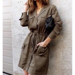 The Carmen shirtdress is made from a linen blend and styled in a classic silhouette that is elegant and seasonless. A defined tie waist adds shape to a relaxed fit, accented with cargo flap pockets to enhance its laidback functionality.
