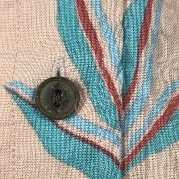 Print/Color: Miami Mirage – pink/peach base with teal and rust palm leaf pattern