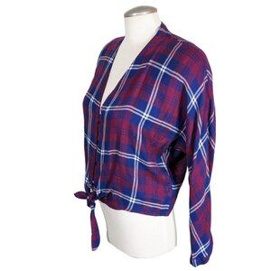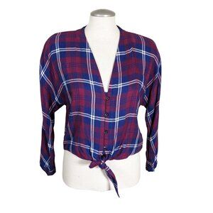 Rails Sloane Plaid Cropped Top Womens S Red Blue Tie Front Dolman Sleeve