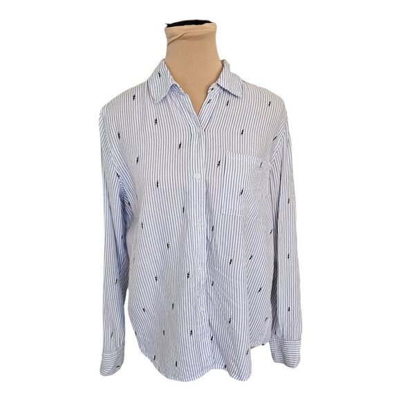 Rails Taylor Blue and White Lightning Bolt Collared Button Up Top Sz S