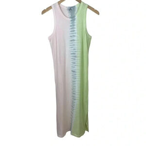 An easy going, casual tank dress in soft and stretchy cotton jersey. Gorgeous and summery sherbet colour pallet and eye-catching dip dye. Crew neck, pull on style, side slits. 100% cotton.