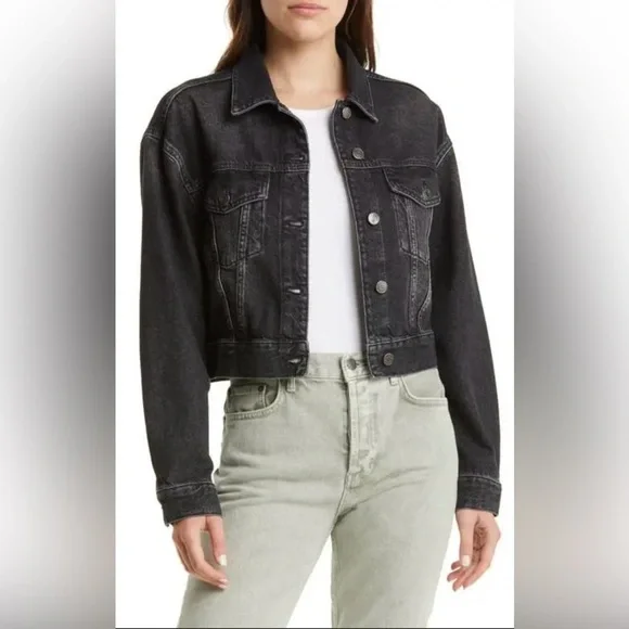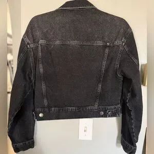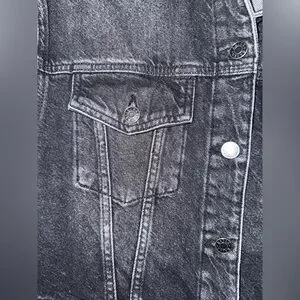 Chic charcoal denim jacket. Ideal for casual wear.