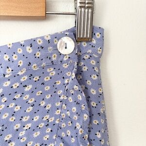 The Rails Nova Skirt in Sky Blue Daisies is a high-waisted, midi-length periwinkle wrap skirt featuring white mini floral print and flirty ruffle hem. Features button closures on both sides of the waist and lining inside skirt. A feminine and flattering piece for any wardrobe.