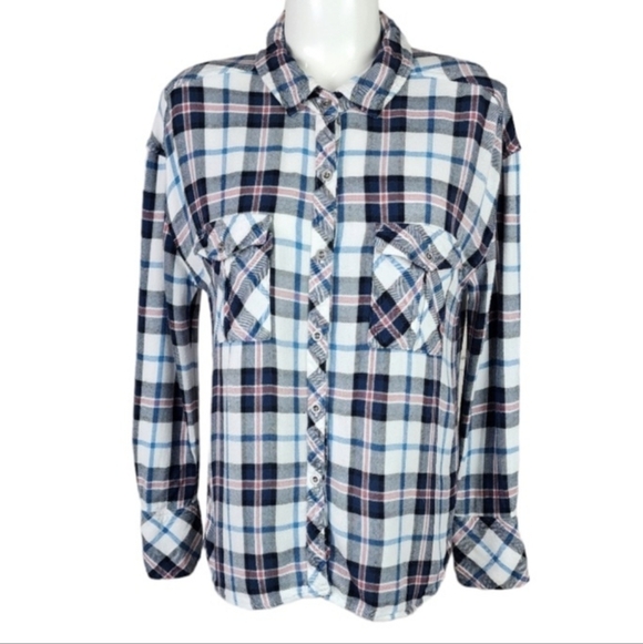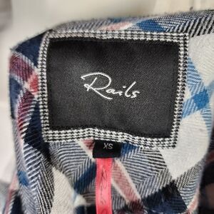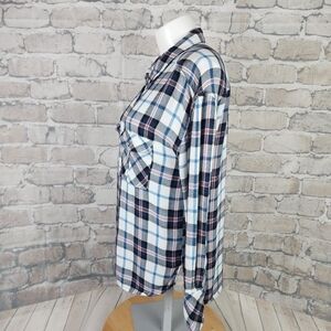 Rails x Free People Button Front Plaid Shirt Rayon White Blues Pink Size XS