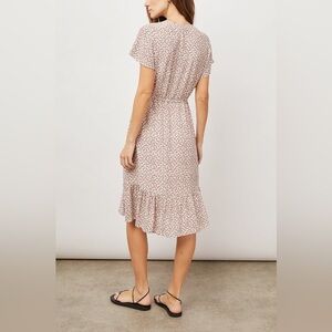 Feel and look your best in this easy, elevated pullover dress with its pretty pink floral print. This short sleeve v-neck midi dress features an adjustable drawstring waistline, ruffle detailing at hem and self covered buttons at center front.