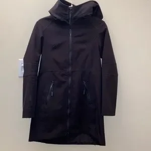 Water resistant rain jacket with hood. Bringing a bit of outdoor functionality to the category of versatile, casual jackets!