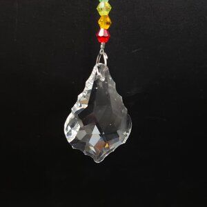 The centerpiece is a substantial, highly faceted crystal prism drop, engineered to capture the sunlight and scatter brilliant rainbow reflections across your walls and floor, creating a magical atmosphere.
