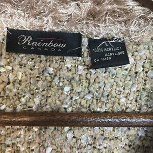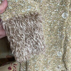 Rainbow Cream Nubby Faux Fur Plush Cozy Fit Chunky Button Cardigan Size L