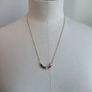 Fresh and decidedly of-the-moment, this rainbow curve crystal bar baguette pendant necklace is equal parts chic and sleek. Crystal embellished with colourful palette makes this a versatile necklace for day to play accessorising. Dainty.