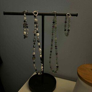 Rainbow Fluorite Beaded Necklace and Bracelet : Green & Purple Gemstone