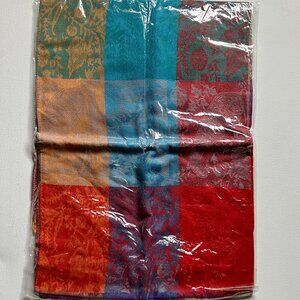 NWOT in bag, never worn. Fairly loose weave with nice knotted fringe.