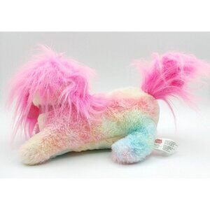 Delight your child with this adorable rainbow plush stuffed animal. Featuring vibrant pink accents, it's perfect for cuddling and imaginative play.