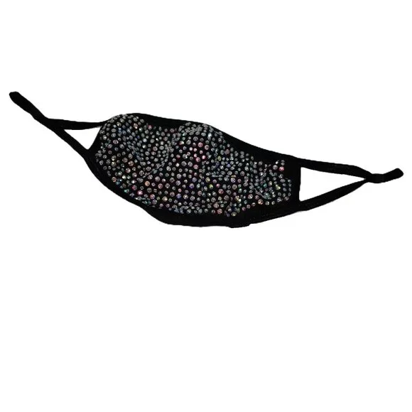 Fashionable Plastic Rainbow shiny Rhinestones Face Mask, with a filter pocket for proper pp. Very Glittery. Can be practical and pretty at once with this stunning piece. Unused, excellent condition. Comes with one Filter.