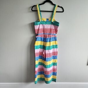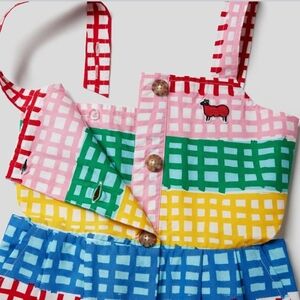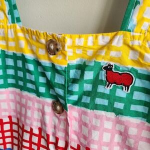 Rainbow Stripped Check Patterned Tank Jumpsuit Sheep Patch Cottagecore Summer