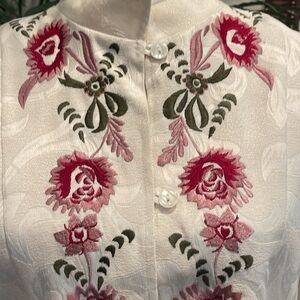 Raindrops medium cream mandarin collar button up tailored jacket embroidered