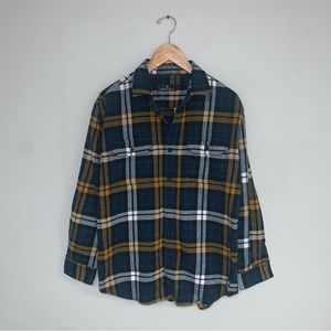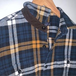 Rainforest Plaid Flannel Shirt Jacket Corduroy Blue Orange Men's Size Medium