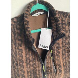 Rains Fleece Vest Mens Medium Brown Winter Warm Full Zip Heavy Monogram