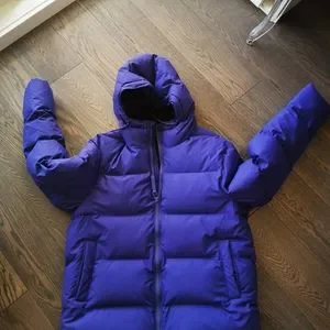 I absolutely love this jacket, I get so many compliments. Just ready for a new colour in my wardrobe! Has a small black mark on the front from a Sharpie, I’m sure it can be removed. Otherwise no signs of wear.
