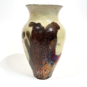 Raku Pottery Vase Artist Singed Art Pottery 6.5" tall Cream / Copper Glaze