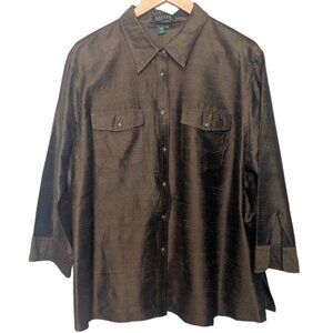 Ralph Lauren 100% Silk Dupioni Shirt | Olive Green Luxury | Size 20W