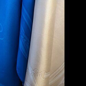 • Material: 100% Silk (tag attached on blue scarf; champagne scarf is same make and collection)