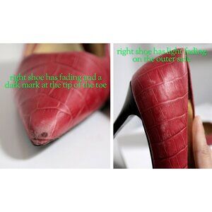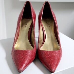 Ralph Lauren "Adena" Red Reptile Textured Leather Stiletto Heels - Women's Size