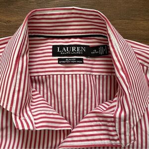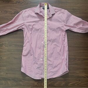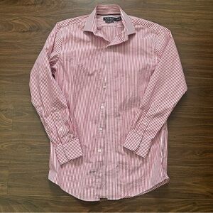 This Ralph Lauren dress shirt features a sophisticated red and white color scheme, perfect for business or smart casual settings. Crafted with attention to detail, it offers a tailored fit and a classic design that complements any wardrobe.