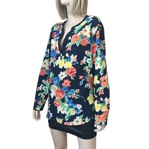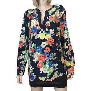 Ralph Lauren Blouse Top Shirt Plunge Neck Tunic Tank Long Sleeve Vivid Floral