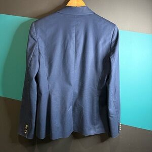 This Ralph Lauren blazer features a sophisticated tailored fit, perfect for both professional and semi-formal occasions. Crafted in a striking blue with gold accents, it offers a classic look with notched lapels and a single-breasted front. The smooth fabric ensures comfort and style, making it a versatile addition to any wardrobe.