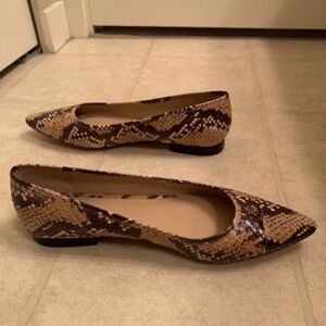 Chic snake print flats. Pointed toe design. Perfect for casual wear.