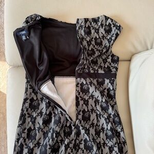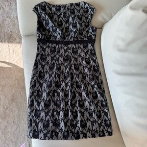 Ralph Lauren CHAPS Black lace White Sheath CapSleeve CrewNeck side Zip romantic