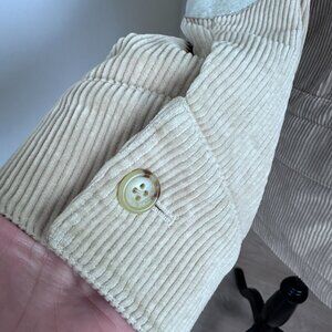 Unisex Quality, Soft, Cozy, Wide wale corduroy, boxy fit, button down, utility, field, chore, barn jacket/coat with front pockets and Leather elbow patches.