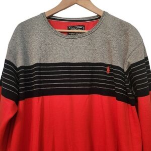 Ralph Lauren Country,Authentic, red, gray with blue on the chest,long-sleeve, crew-neck sweater. Pull-on, stretchy cuffs,waistband, Ralph Lauren logo on the chest. Super comfortable, lightweight, stretchy and in great condition.