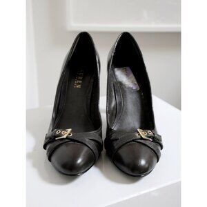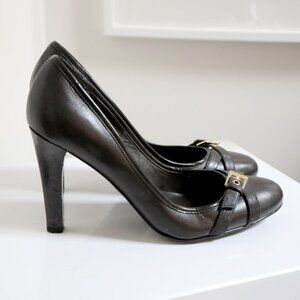 Ralph Lauren Dark Brown Leather Stiletto Heels w/ Strappy Buckle Detail - Women'